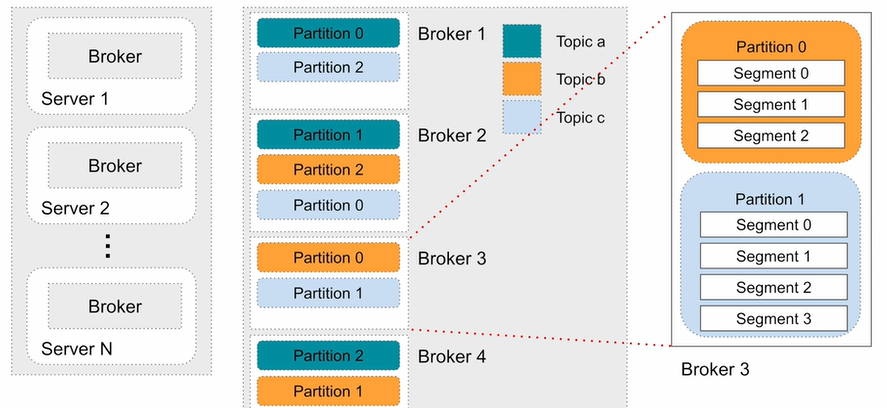 "Broker"는 Kafka 클러스터의 실제 데이터를 저장하는 다수의 서버 입니다.