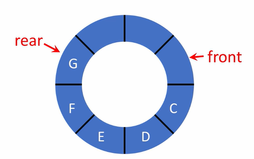 "환형 큐"는 정해진 개수의 저장 공간을 빙 돌려가며 이용하는 자료구조 입니다.