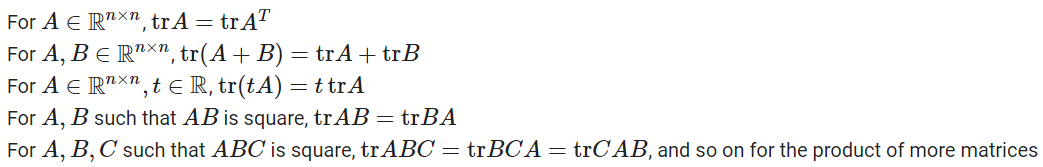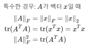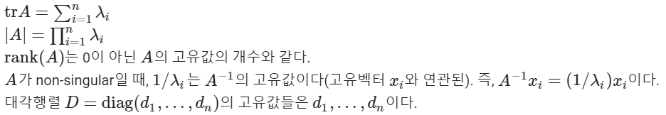 - 대각합(Trace) : 주대각선의 모든 원소들의 합