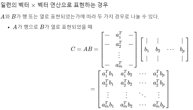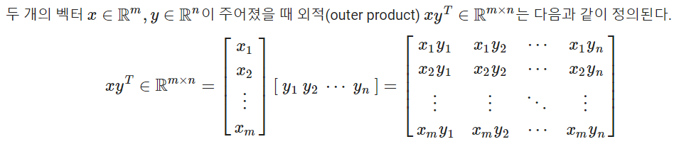 - 단위행렬(Identity Matrix) : 주대각선의 모든 원소의 값이 1인 대각행렬
