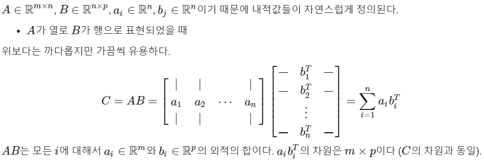 - Column Rank : 행렬의 열의 부분집합 중 가장 큰 선형독립인 집합의 크기