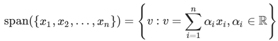 "생성"(Span)은 벡터의 집합이 다음 식을 만족하는 경우를 말합니다.