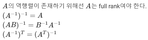 "역행렬"(The Inverse)는 다음을 식을 만족하는 정방행렬 입니다.