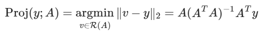 "투영"(Projection)은 치역 위에서 벡터가 다음 식을 만족하는 것을 말합니다.