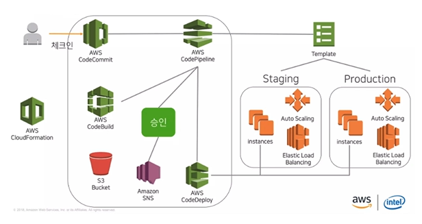 - AWS Management Console 혹은 AWS Command Line Interface(CLI)를 사용해 소프트웨어 릴리스 프로세스 단계 정의 가능