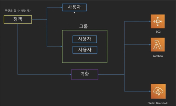 강의 IAM "IAM"(Identity and Access Management)는 AWS 리소스에 대한 액세스를 안전하게 제어할 수 있는 서비스 입니다. 역할 및 권한 관리 루트 사용자 : 액세스 권한이 있는 단일 로그인 ID 일상 작업에서의 루트 사용자 사용을 권장하지 않음 IAM 특징 AWS 계정에 대한 공유 세분화된 권한 : 리소스별 권한 부여 가능 Amazone EC2에서 실행되는 애플리케이션을 위한 보안 AWS 리소스 액세스 멀티 팩터 인증(MFA) ID 페더레이션 : 임시 액세스 권한 부여 보장을 위한 자격 증명 정보 PCI DSS 준수 : 신용카드 데이터 저장 및 처리 국제 표준 다수의 AWS 서비스와의 통합 최종 일관성 무료 사용